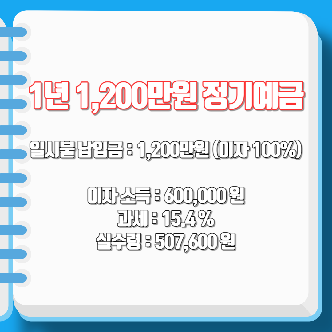 그럼 기간 1년 총 금액 1,200만원이라고 했을 때, 정기적금과 정기예금의 차이를 보시죠